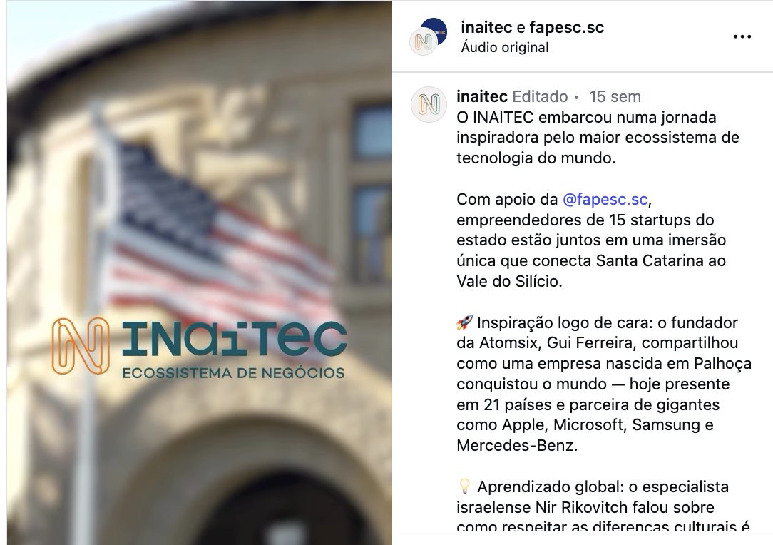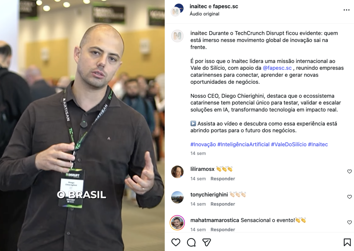 O desafio era divulgar a participação do Inaitec em missões ao Vale do Silício e à Europa, com apoio institucional da Fapesc, além de construir posicionamento e legado.